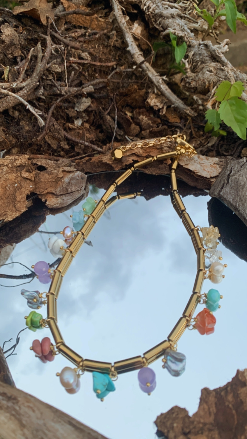 As pedras naturais, com suas tonalidades vibrantes, são verdadeiras fontes de energia, simbolizando equilíbrio, proteção e vitalidade. As pérolas de água doce, representam pureza e sofisticação, trazendo um toque de delicadeza à peça. A combinação desses elementos cria um colar cheio de significado, perfeito para iluminar o seu dia a dia com positividade e estilo.